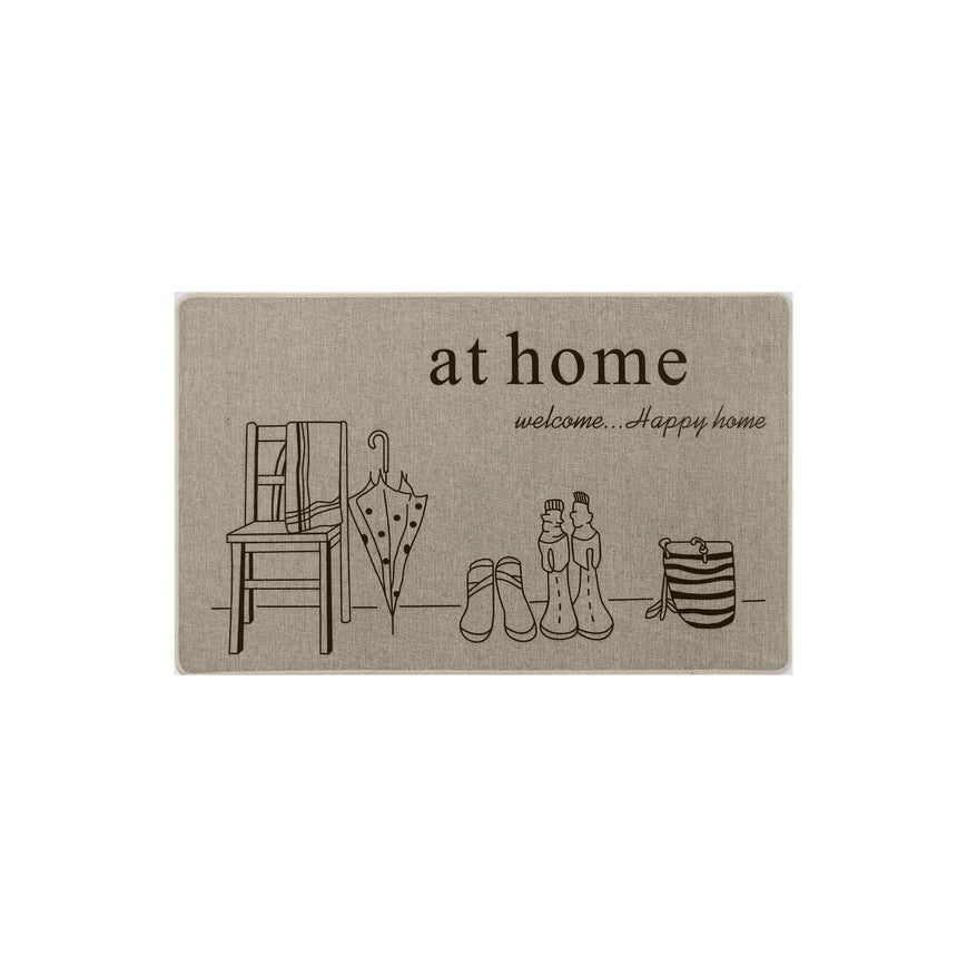 Welcome all guests into your home with the At Home Doormat! Perfect for both indoor and outdoor use, this mat features a cheerful "Welcome" message to brighten up any room. Use it in your kitchen or bathroom for added versatility. Bring a touch of happiness to your home with this doormat.