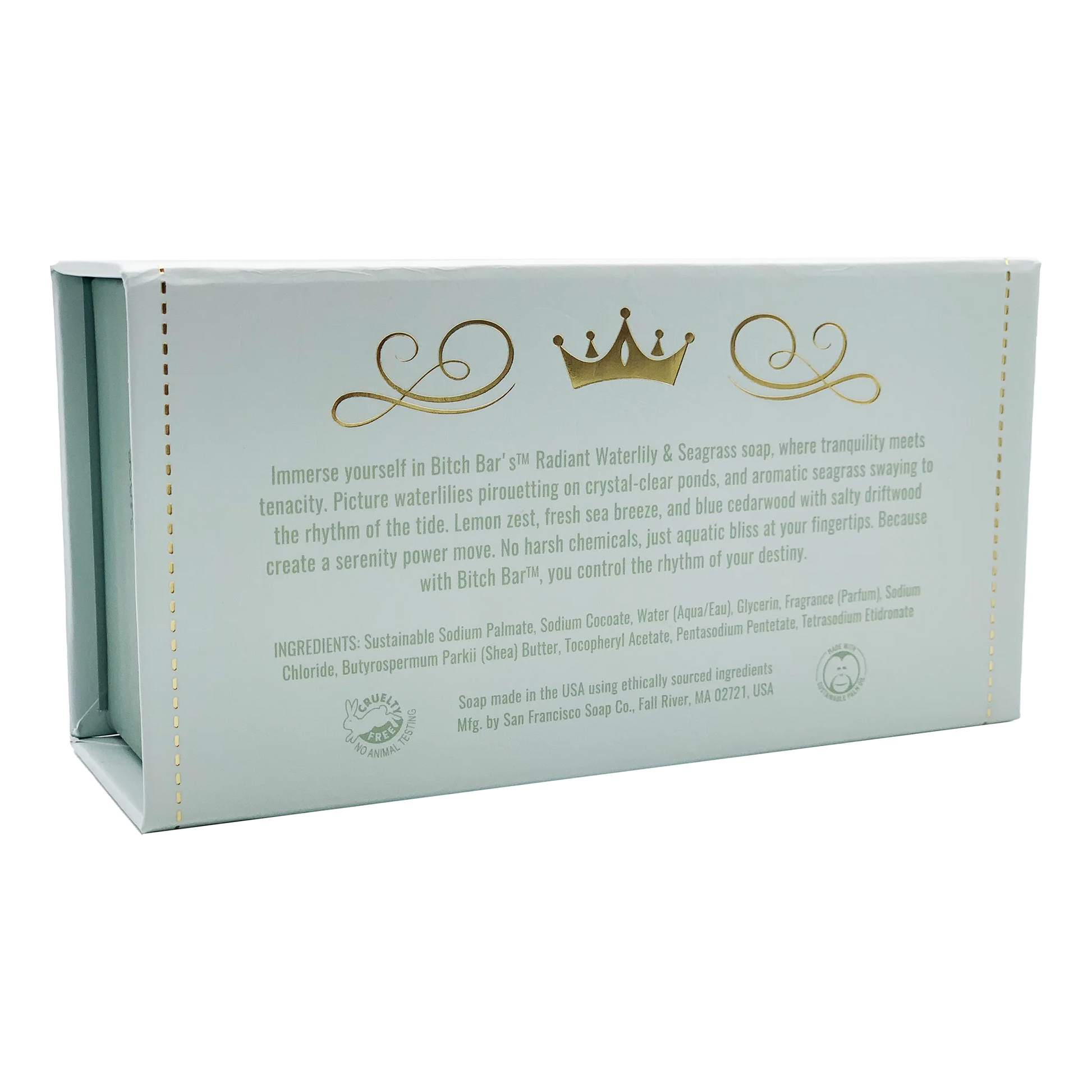 Immerse yourself in Bitch Bar's Radiant Waterlily & Seagrass soap, where tranquility meets tenacity. Picture waterlilies pirouetting on crystal-clear ponds, and aromatic seagrass swaying to the rhythm of the tide. Lemon zest, fresh sea breeze, and blue cedarwood with salty driftwood create a serenity power move. No harsh chemicals, just aquatic bliss at your fingertips. Because with Bitch Bar, you control the rhythm of your destiny.