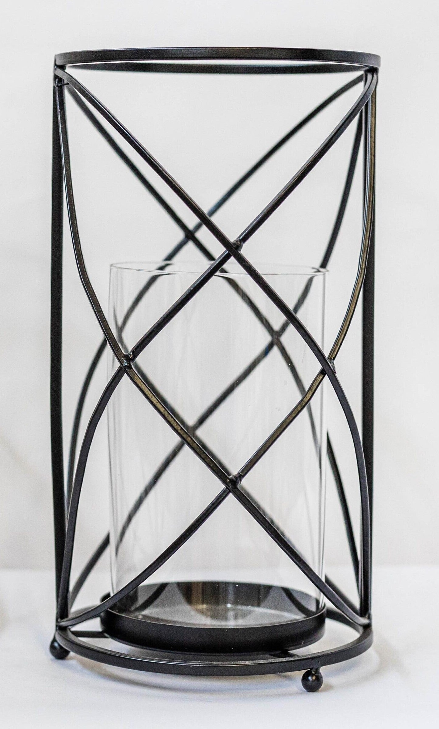 This Black Metal Hurricane Lantern 13" high and 7" wide, offers reliable wind-resistant illumination with a classic look—perfect for adding cozy light.