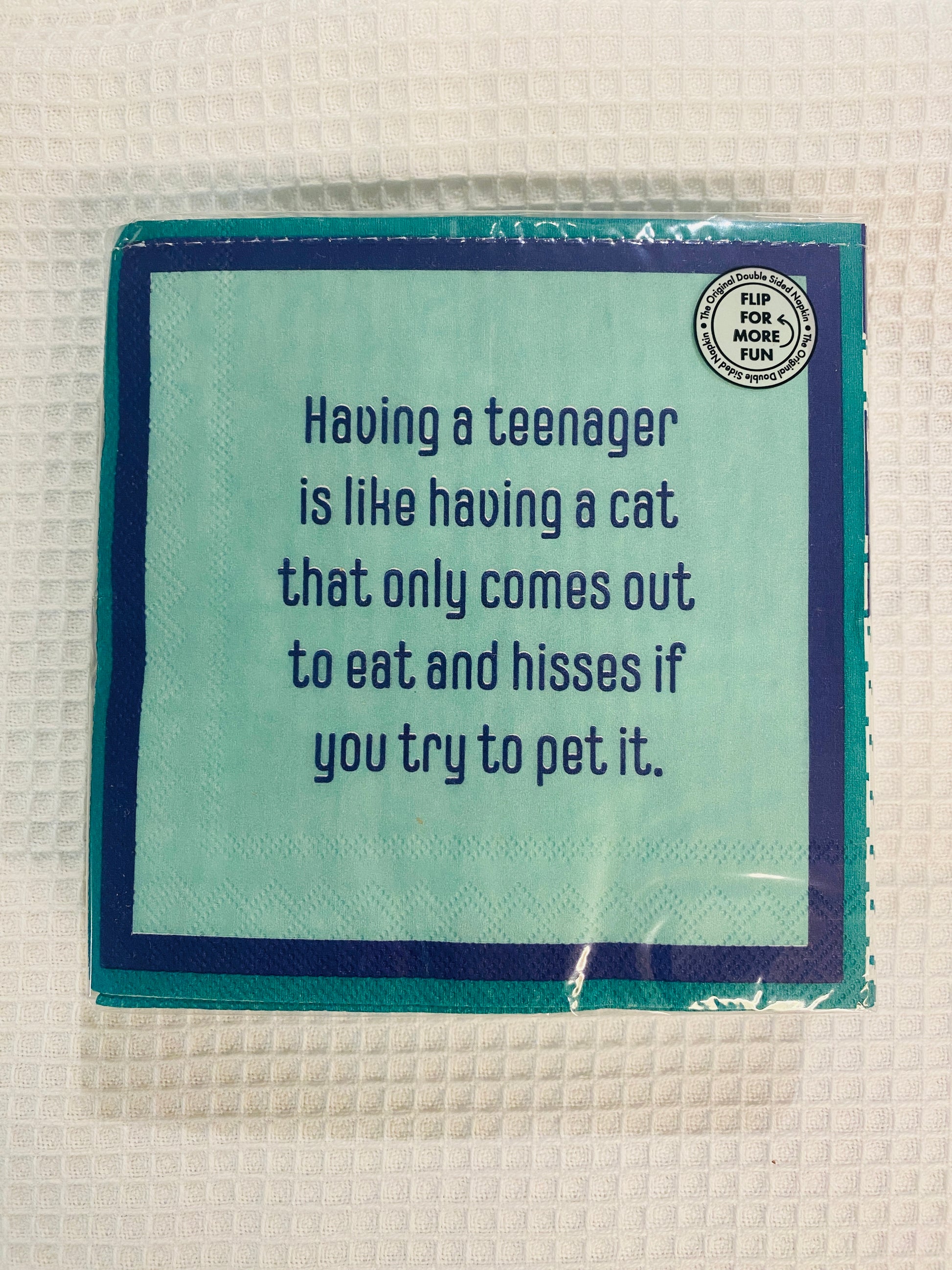 Humorous Reversible Cocktail Napkin Teenage Cat