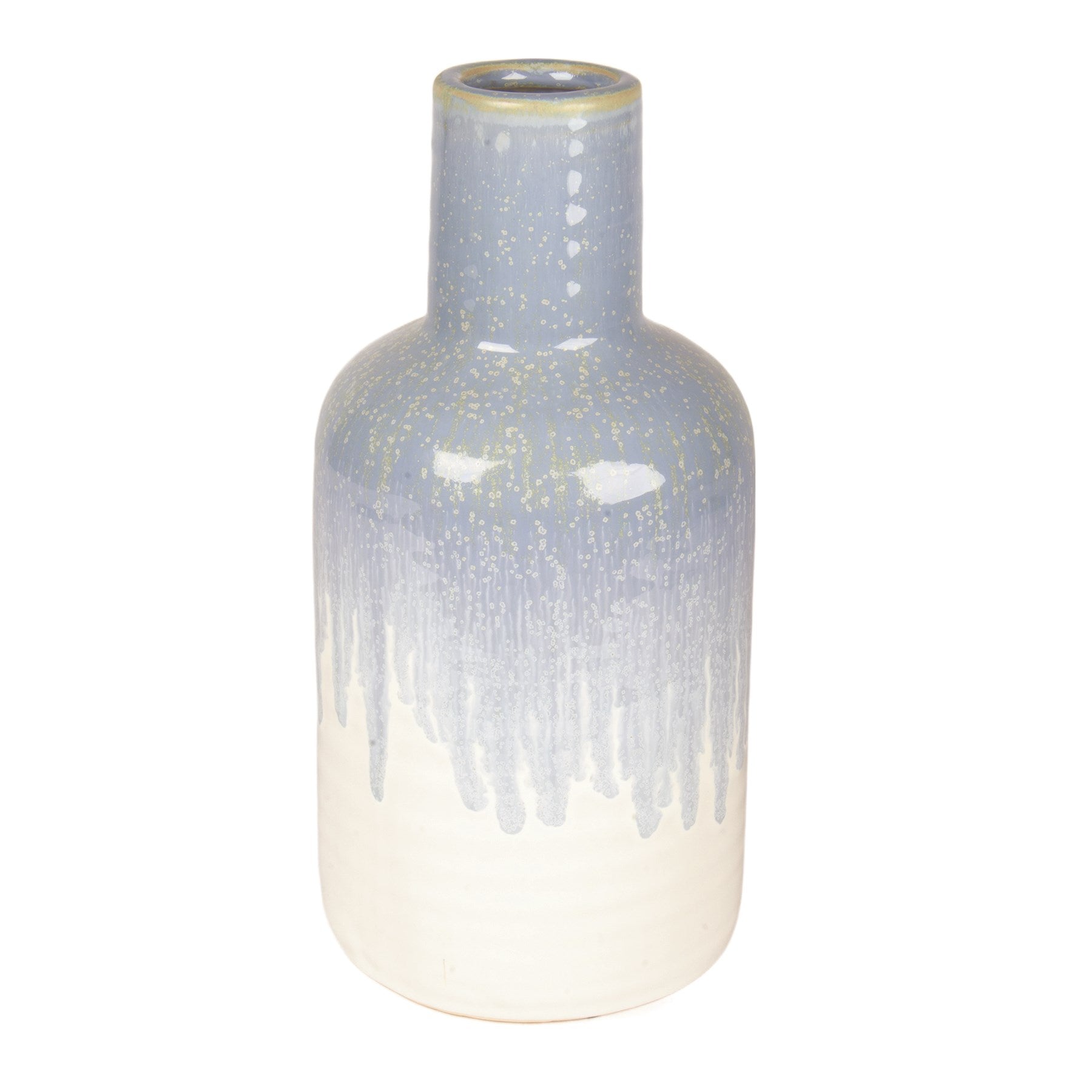 This tall periwinkle blue and white vase is made of glazed earthenware, measuring 4.5" in diameter and 10" in height. Its unique design combines a gorgeous color combination with expert craftsmanship, making it a beautiful addition to any home décor. Display your favorite flowers or simply enjoy the elegant aesthetic of this vase on its own.