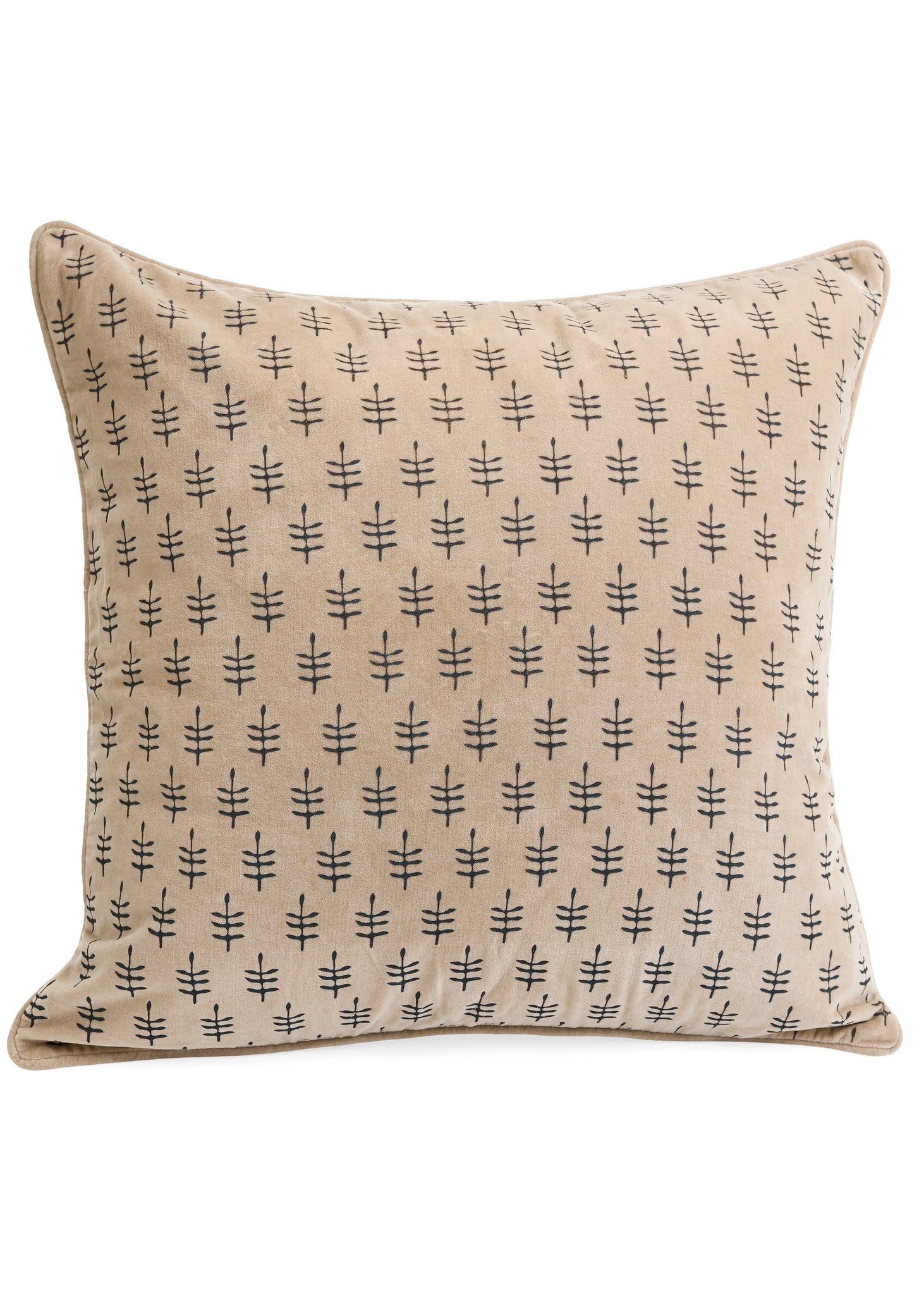 Elevate your living space with this Cotton Velvet Block Print Cushion. Measuring 24x24", it features a soft beige fabric adorned with striking dark grey and black prints, adding a sophisticated touch to any room. Filled with a plush polyfill insert, it offers both comfort and style, making it perfect for relaxing or enhancing your décor.