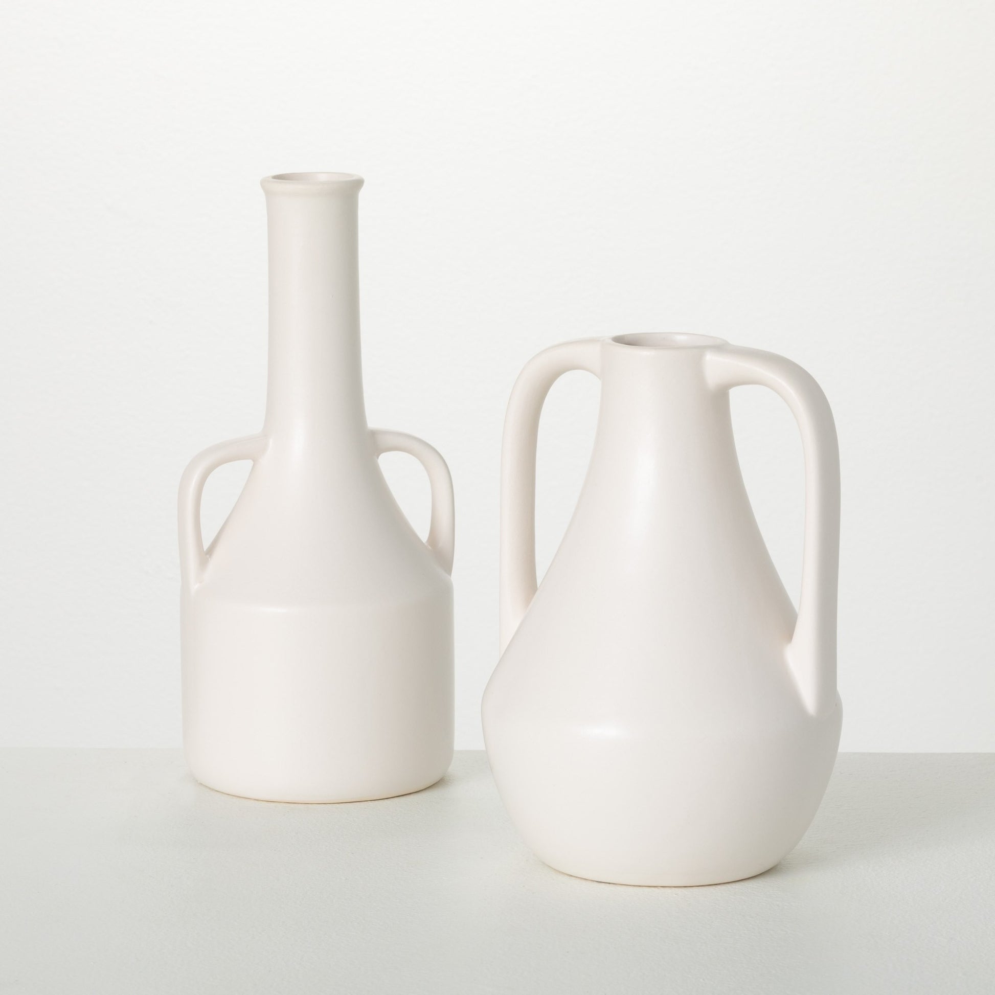 The Cream Coloured Handled Vase is the perfect accent for any room. Equipped with two handles for easy portability. A timeless design for any space, the vase is finished with a soft cream glaze.