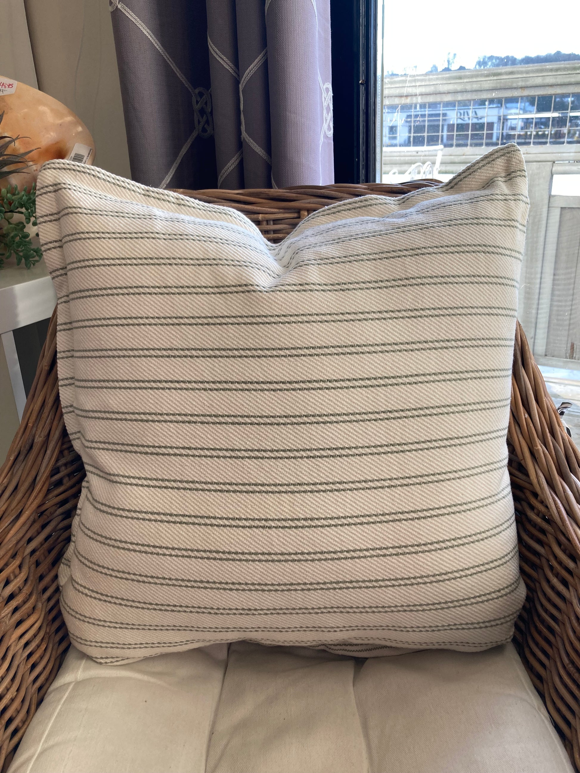 Cream Cushion with Green Stripes 20"