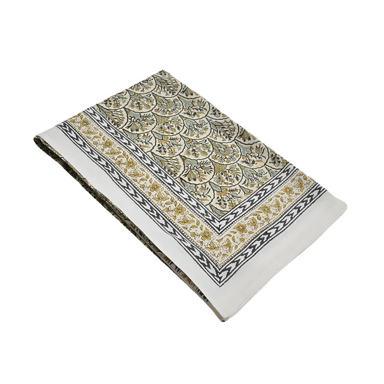 Elevate your dining space with the Earthy Block Print Table Cloth, crafted from soft, durable cotton in calming beige, green, and blue hues. Its intricate block prints bring artisanal elegance to everyday meals or special gatherings. This 90x60-inch table cover not only protects your surface but also adds a natural, handcrafted touch that enhances your home’s warmth and style. Make every meal memorable with this beautiful and practical addition to your tabletop.