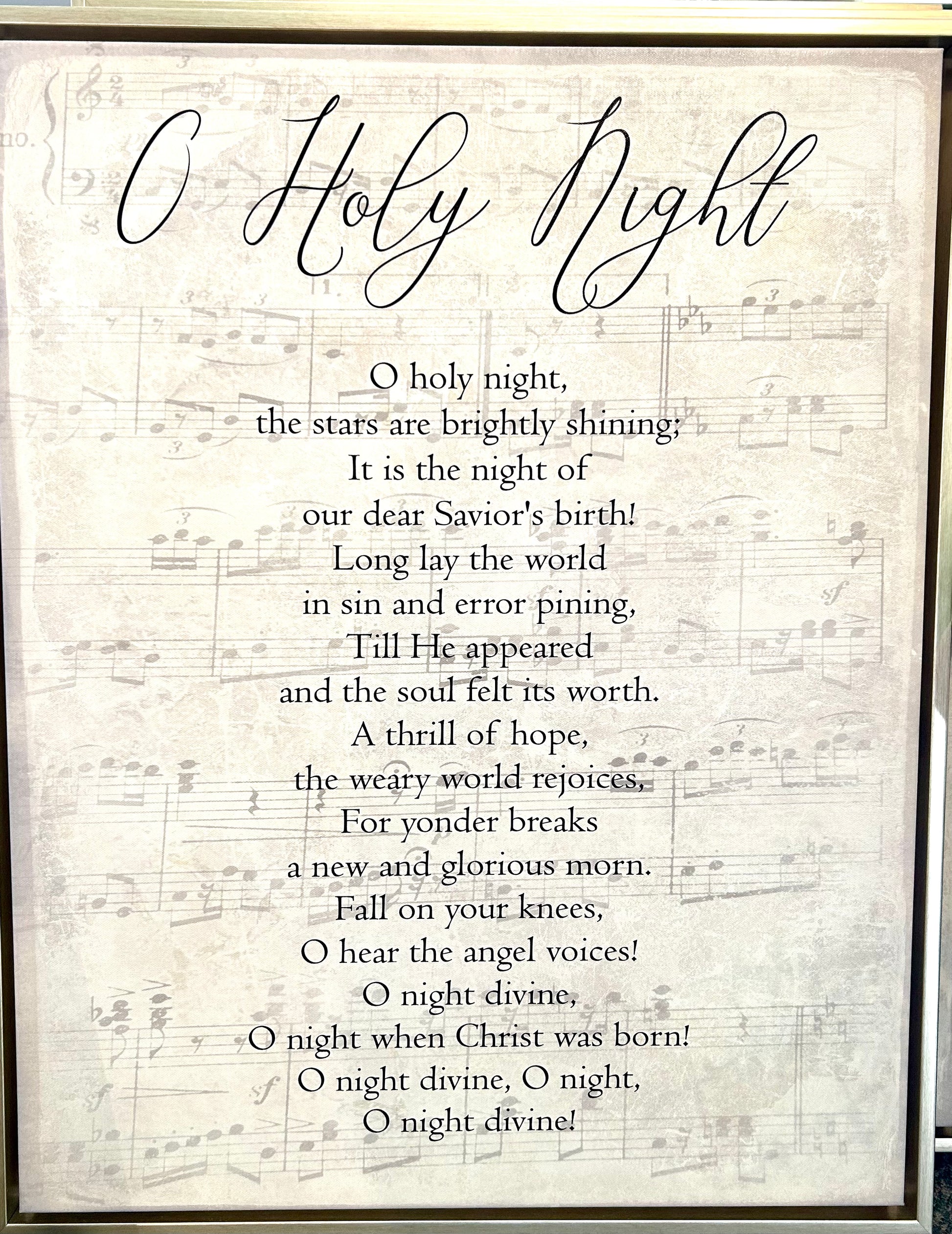 Celebrate the holiday spirit with this 22x28" Framed Oh Holy Night Print featuring beloved lyrics. The stylish frame enhances its festive charm, making it a perfect seasonal decoration. Available for store pick-up only.