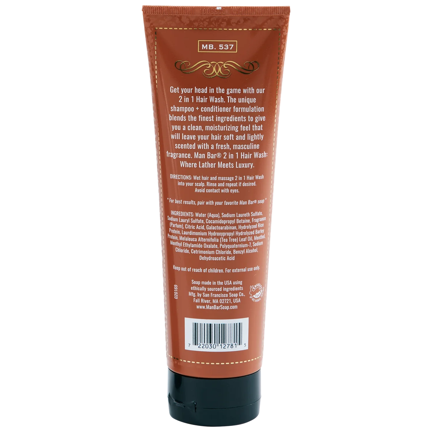 Get your head in the game with our 2-in-1 Hair Wash. The unique shampoo + conditioner formulation blends the finest ingredients to give you a clean, moisturizing feel that will leave your hair soft and lightly scented with a fresh, masculine fragrance. Man Bar 2-in-1 Hair Wash – Where Lather Meets Luxury.