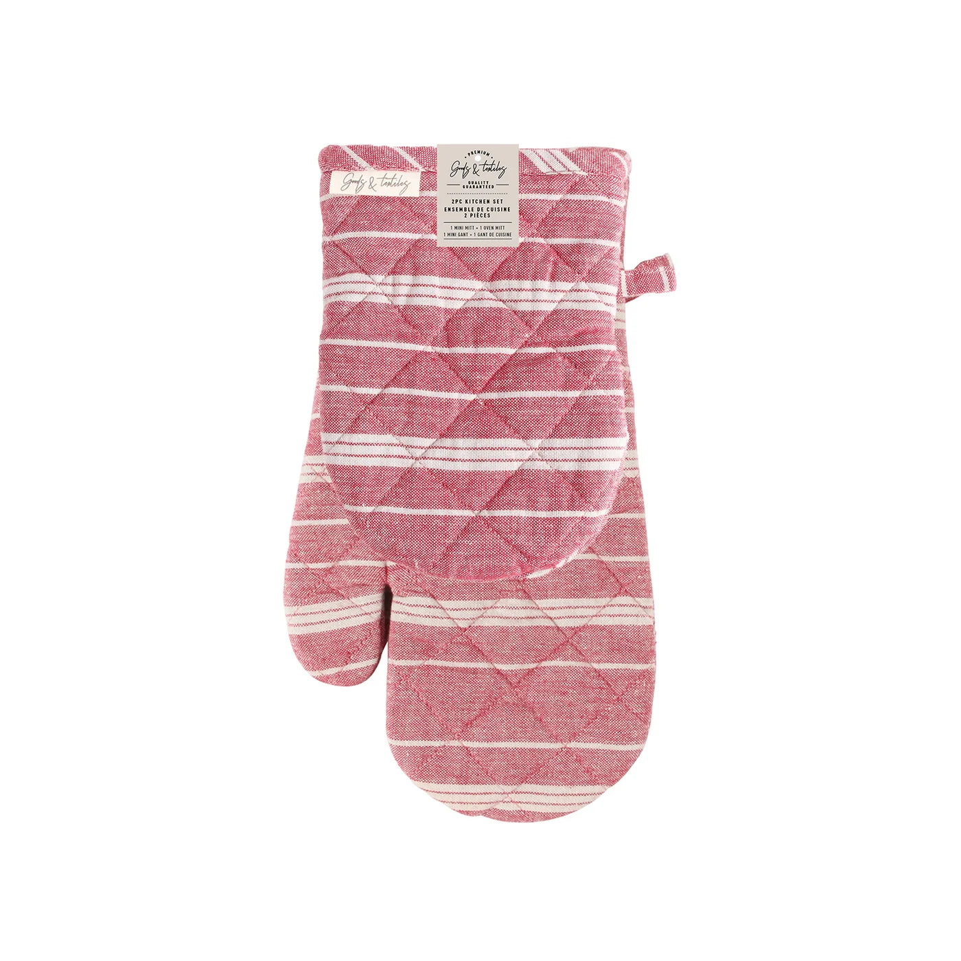 Red Stonewash Striped Mitt and Grabber Set
