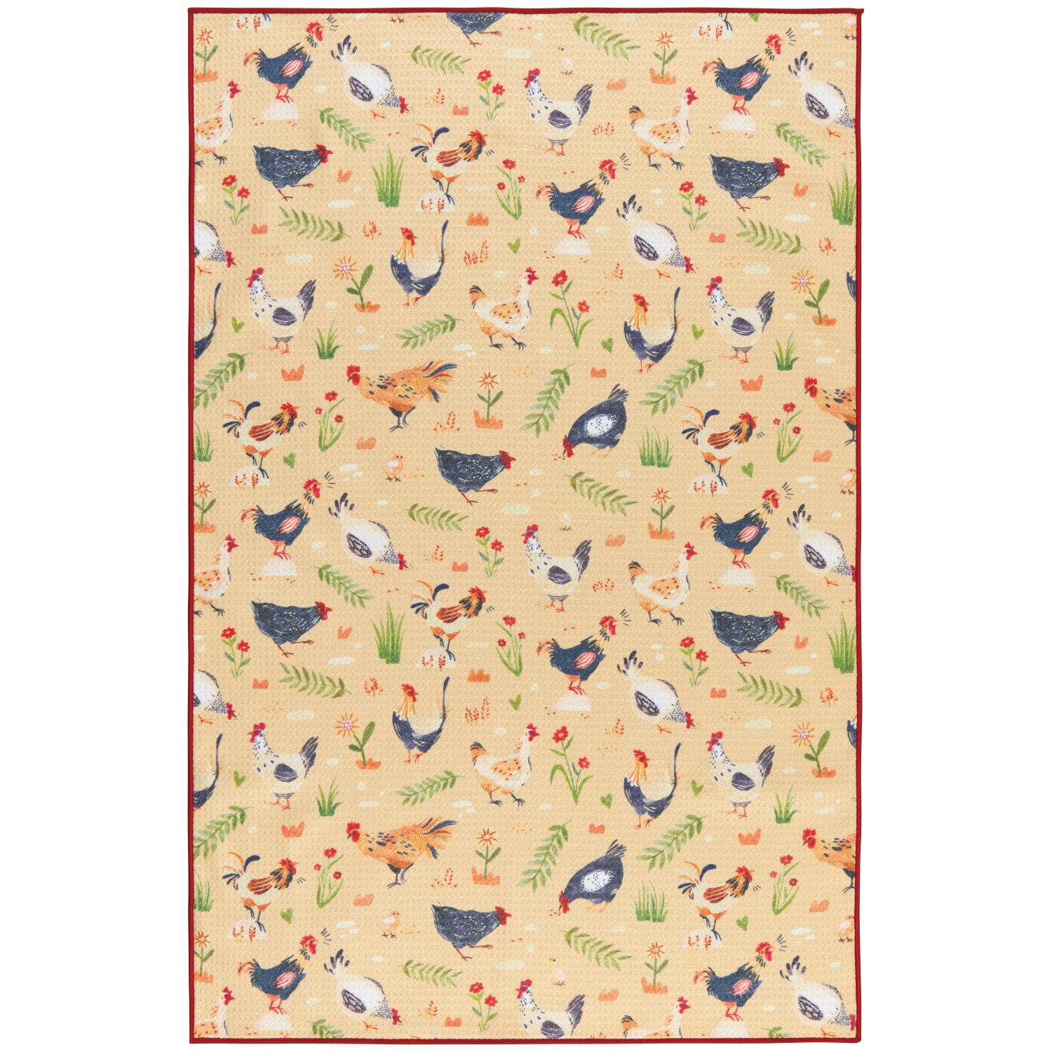 Dry off the dishes and dress up the kitchen with a soft and versatile microfiber Free Range dishtowel. Feathered friends rule the roost in the cozy farmyard scenes of the Free Range collection—warm greens and yellows and country-kitchen creams and blues are inspiring ingredients for farm-fresh cooking and baking.