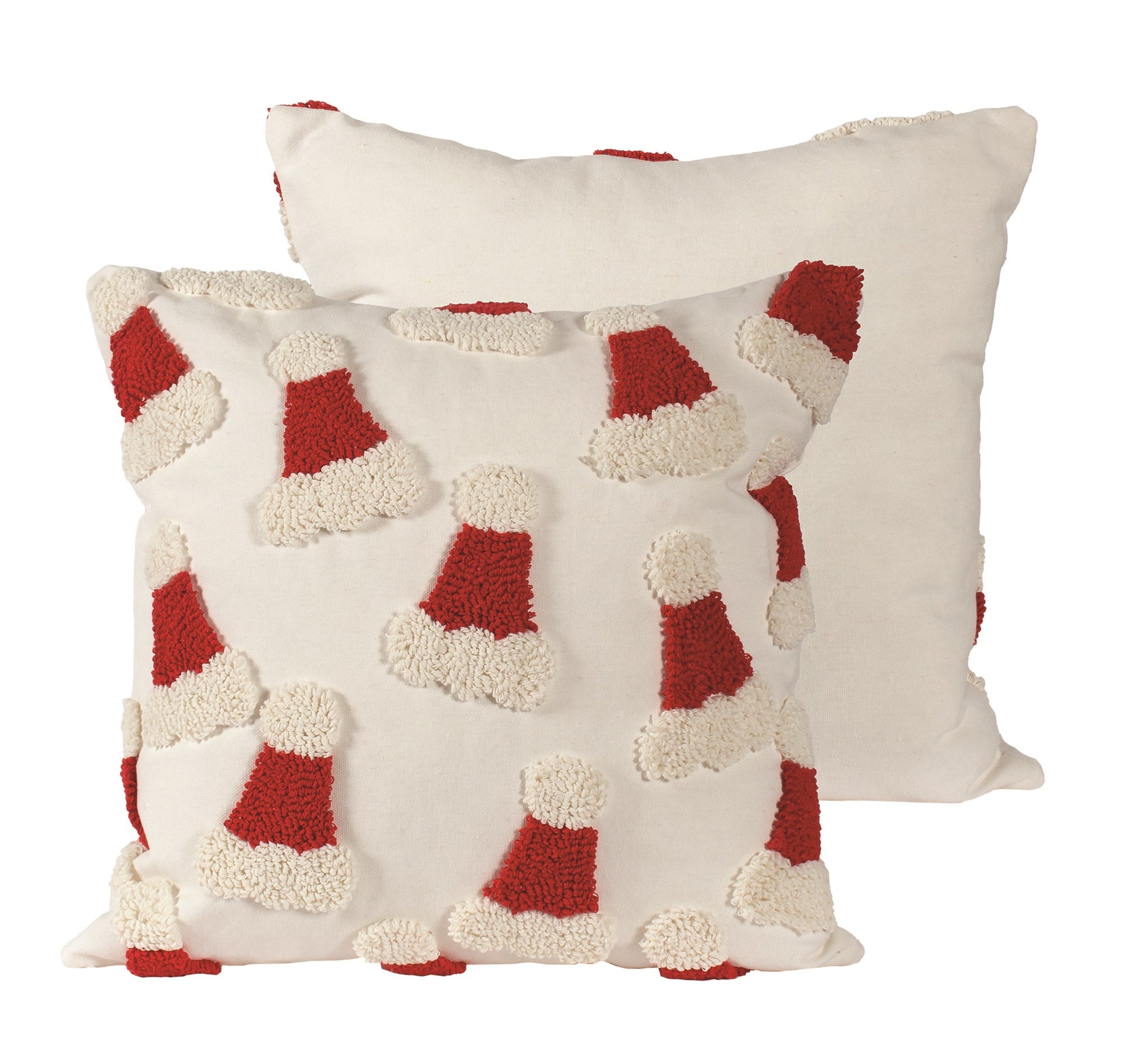 Bring festive cheer to your home with the Santa Hat Cushion 18". This white cushion features charming red and white embroidered Santa hats, adding a playful holiday touch to any room. Its soft fabric provides comfort, making it perfect for cozying up during the festive season while enhancing your seasonal décor.