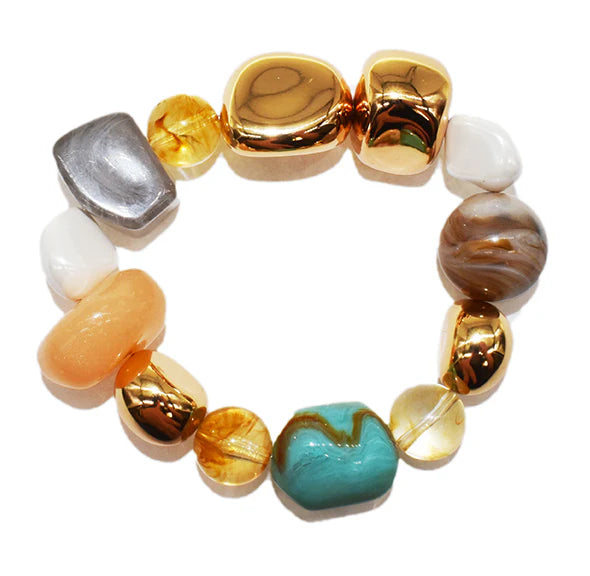 Semi-Precious Stone Glass Bracelet - Gold and Turquoise