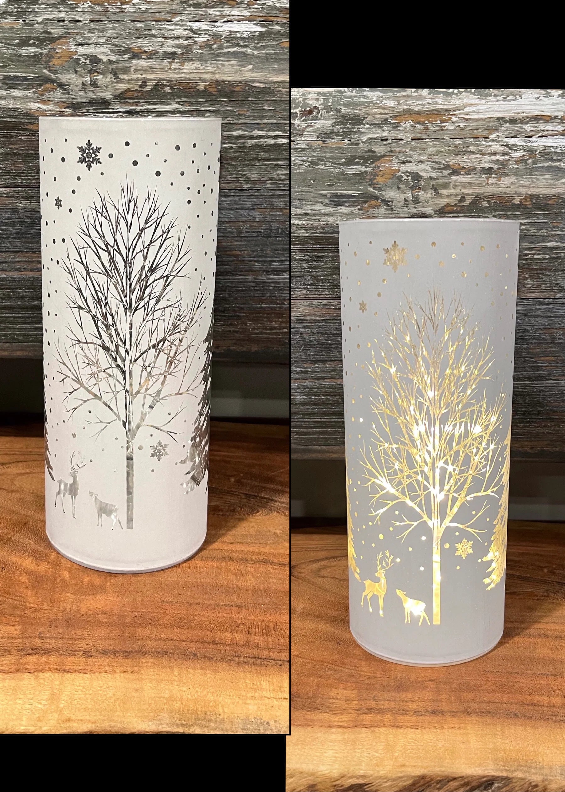 Illuminate your space with the white Tree with Reindeer LED Light. Measuring 3.5" x 8", its sleek design adds festive charm while brightening any room. Perfect for creating warm holiday ambiance with a modern touch.